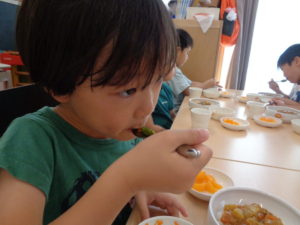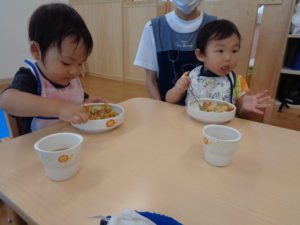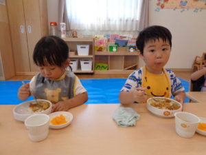 たくさん遊んでみんなお腹ペコペコ。