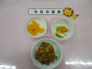 今日の給食は、みんなが大好きなカレーライスでした!