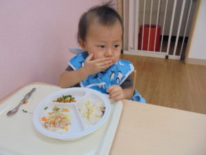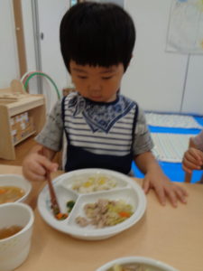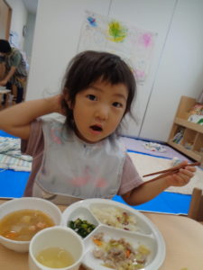 たくさん遊んだ後には、大好きな給食です!