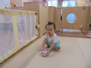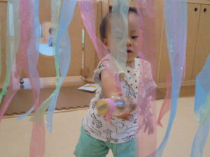 ボールで遊んだり、すずらんテープのカーテンをくぐったり・・・