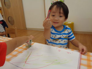 ひまわり組さんは、なぐり描きをいっぱい楽しみました(^▽^)/