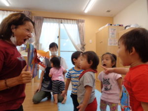 先生と一緒に歌を歌ったり、絵本を見たり、とっても楽しかったね(⌒∇⌒)