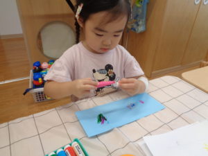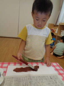 めろん組さんは秋の製作をしました(*^▽^*)何が完成するのか楽しみですね😚