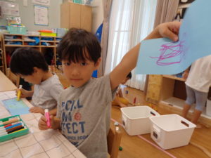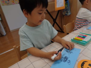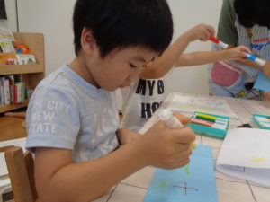みんな真剣に好きな絵や模様を書きました(^O^)