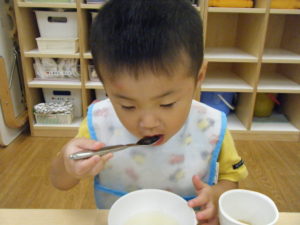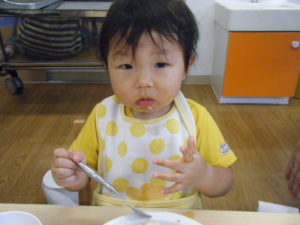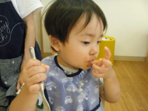 スプーンが上達して一人できれいに食べられることが増えてきました!