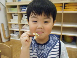 小さな食材を上手に掴んで「みてみて~~」と見せてくれました!