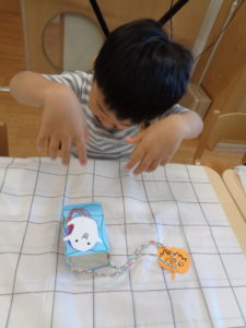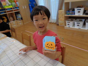 めろん・そら組のお友だちは、ハロウィンの行事に向けて衣装やカバン作りをしました(^^)♪