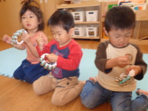 めろん組さんは 発表会の曲に合わせて すずのならし方の練習しました♪