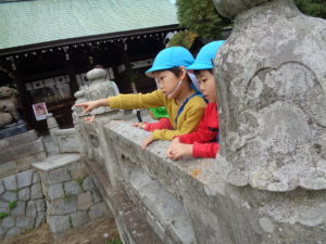 リトミックのあとは めろん組さんと一緒に近くの神社まで お散歩に行きました♪