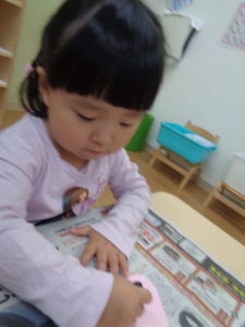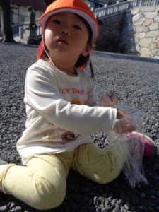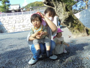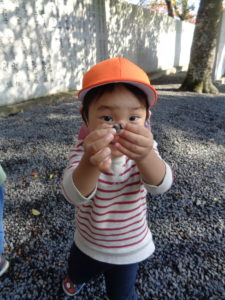 初めて来たお友だちも、砂利や落ち葉やどんぐりを手に取って不思議そうに見つめています。