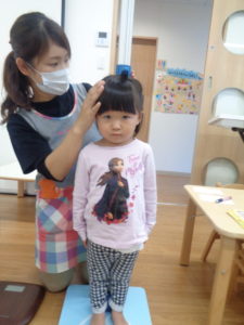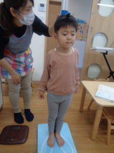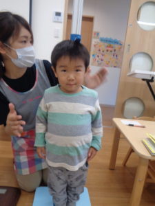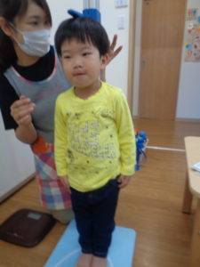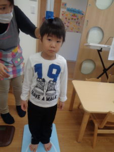 そら組さんとめろん組さんはピシッと背筋を伸ばして身長を測れていますね!