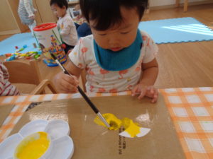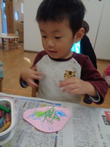 ひまわり組さんは、秋の葉っぱに色付けをして・・・
