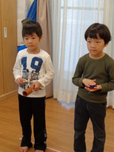 めろん組さんとそら組さん、製作と楽器練習の後は一緒にお散歩に行きましたよ(⌒∇⌒)