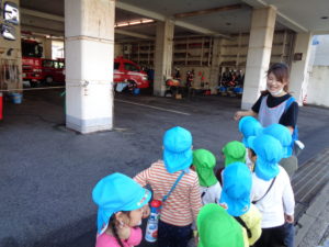 消防車を見た後は、あるお店の前でみんなくぎ付け!