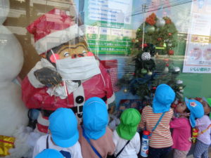 ガラスの向こうにはなんと、クリスマスツリーとサンタさんが・・・( ゚Д゚)