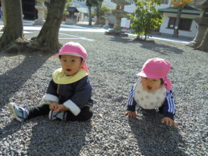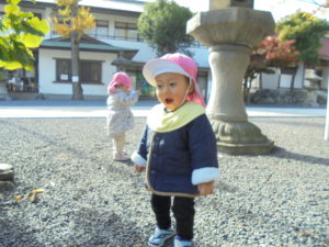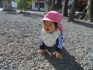 神社の中を、いっぱい歩いたりハイハイしたりして楽しみました!
