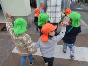 道路を横断するときにも、上手に手を挙げて渡れていましたよ(*^▽^*)
