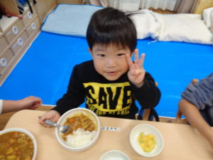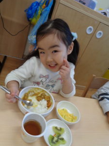 一生懸命練習した後は、お腹もペコペコ。みんなが大好きなカレーが給食に出て、モリモリ食べていましたよ!