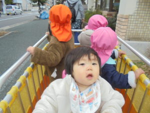 風にも負けず、元気に出発したのはいちご組さんとひまわり組さん♪