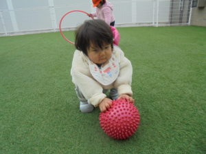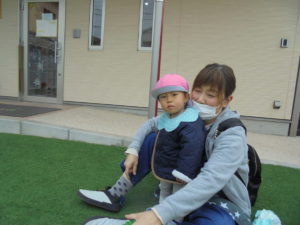お散歩の後は園庭で遊びました。