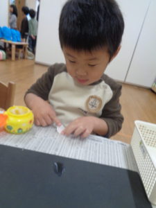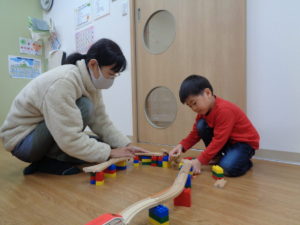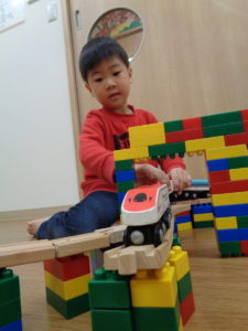 遊びの中で、「かして」「あそぼ」と声を掛け合う姿も見られ、みんなで楽しく遊ぶことができました。