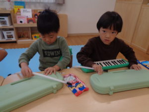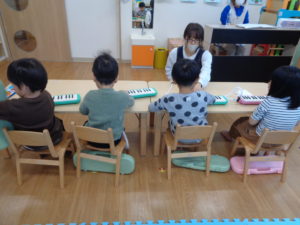そら組さんは松縄園から遊びに来たにじ組さんと一緒に、楽器の練習をしました!