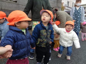 先生やお友達と手をつないで、行ってきまーす!