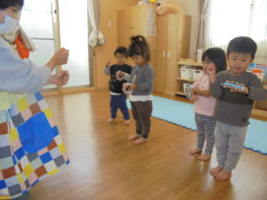 発表会に向けて、鈴を鳴らす練習です(^^♪