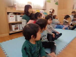 先生のお膝からドスンと床へ落ちると、声を出して笑っているお友だちもいましたよ(●´ω`●)