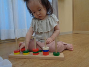 その前に・・・ひまわりぐみさんは、木のおもちゃを使って遊びました😊