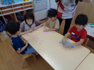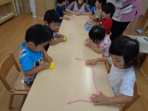 今週は、夏風邪による発熱や体調不良での欠席が多くみられました。ゆっくり体を休めて来週は元気に登園してくださいね(*”▽”)待ってます✨