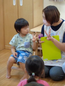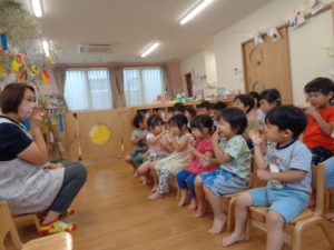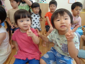 手遊びをしながら、誕生会の始まりです🎵