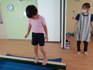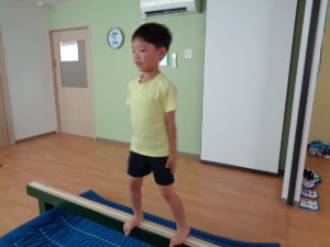 そら組さんは、体操教室に出かけ、平均台や鉄棒を頑張ってきました。