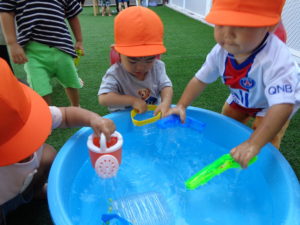 色々なおもちゃを使って水の気持ちよさを存分に味わっていました🌞