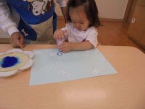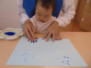 絵の具でスタンプや手形を楽しみました°˖✧◝(⁰▿⁰)◜✧˖°集中して取り組めていますね✨