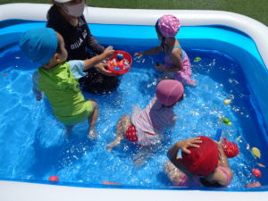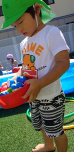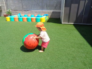 しっかり体を動かした後は園庭で水遊び🚿大きなスイカを見つけたお友だちも発見❕❕