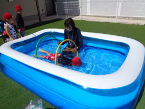 プールの中の魚や動物をみんなで協力して救出☆彡