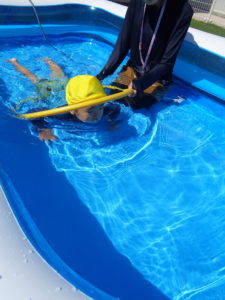 プールをしました。まずはバタ足の練習から(´▽`*)
