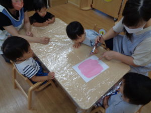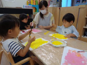 ピンクに黄色、みんな先生のお話をよく聞いて、ワクワク♫ドキドキ、やってみたーーい!!