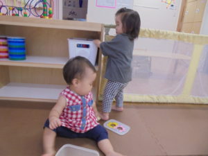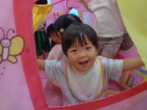 いちご組さんは、室内のおもちゃでいっぱい遊んだ後は、トンネル遊びをしました(o^―^o)