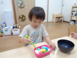 みんな、真剣に取り組んでいますね! おはしも上手に持てていますよ!! さすが、めろん組さん(o^―^o)