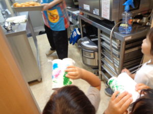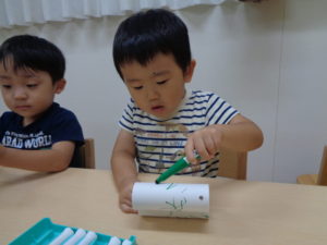 今日はトイレットペーパーの芯を使って製作をしたみたいですよ。