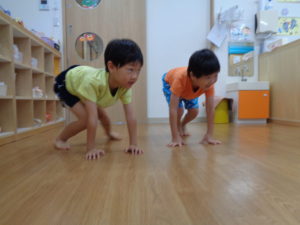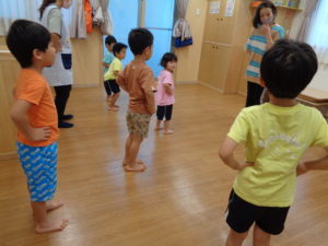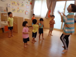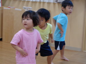 腕をぴんと伸ばしてみたり、しゃがんで足を上げてみたりと体全体での表現を楽しみました!