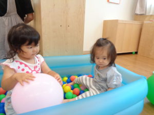 室内遊びではボールプールで遊びました。ころころとボールの感触や音が楽しいね(^o^)