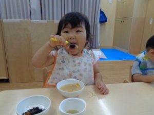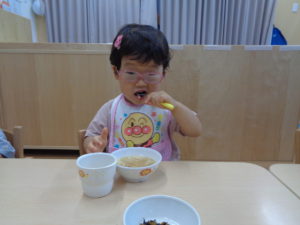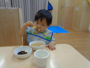 毎日雨が降っていますが、「今日はザーザー雨だね!」「ポツンポツンて音がしたね。」と雨音に耳を澄ませて楽しむ姿も見られます♪