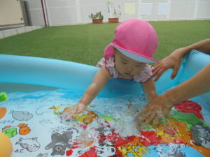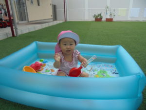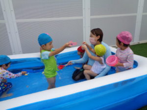 製作の後は、お外に出てプールをしました!!