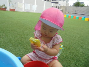今日もいいお天気で、たくさんお外で遊んだ保育園のお友だち。