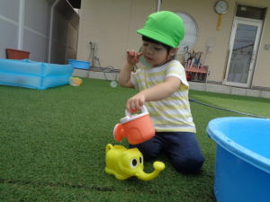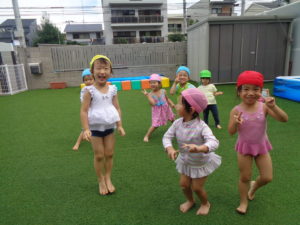 おやつの後は水遊びをしました!!