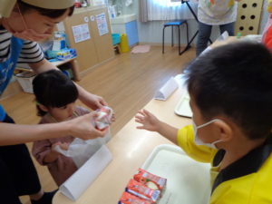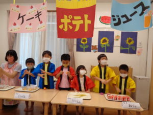 「いらっしゃいませー!!」と大きな声を出しながら、上手にお客さんに食べ物を渡すことが出来ました😆