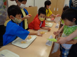 いちご組さんは、まずはおやつをモグモグ😋